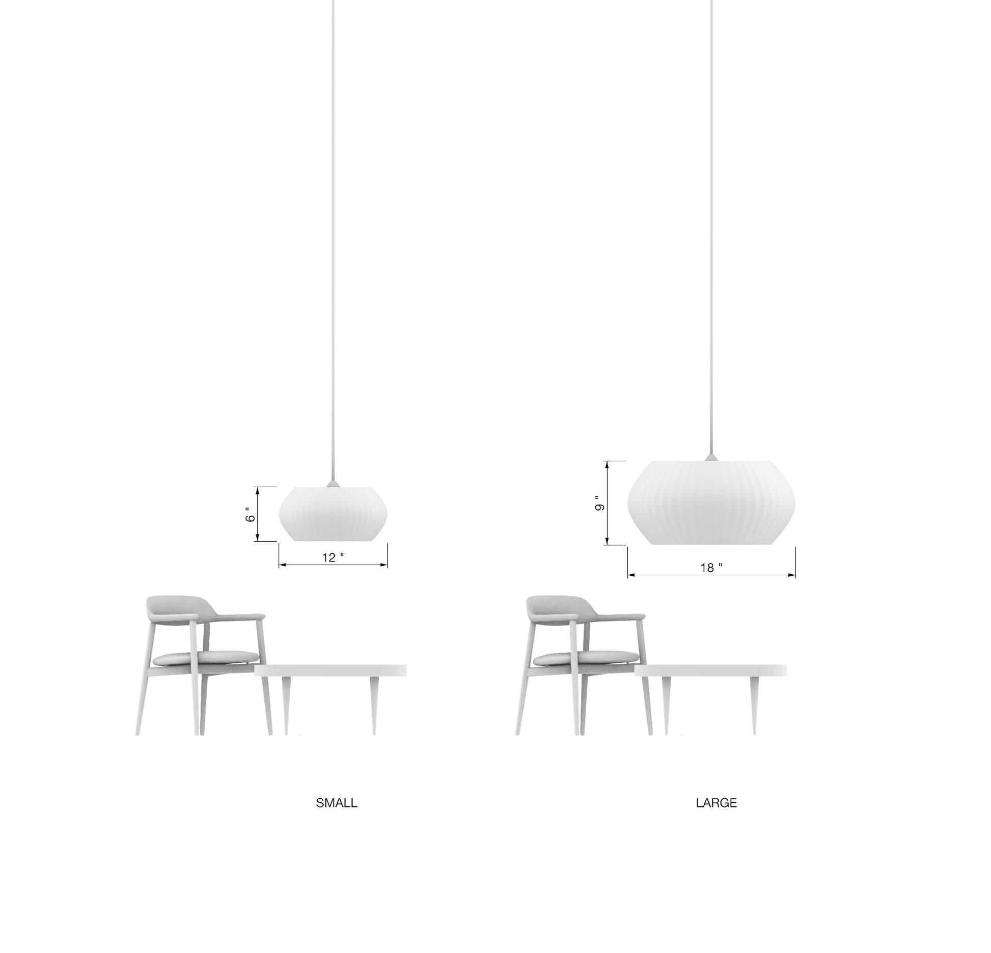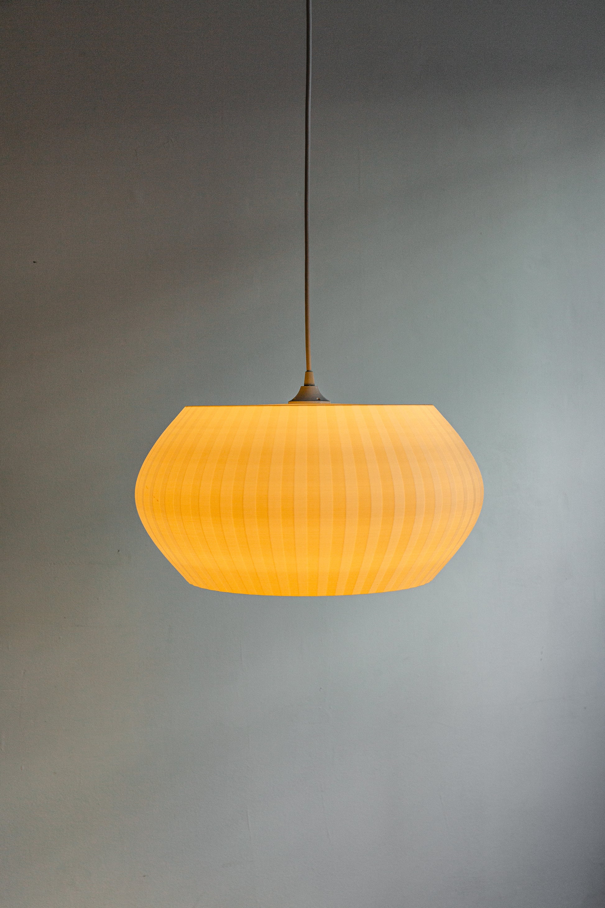 Inspired by the calm balance of horizontal planes, the Horizon Pendant features a wide, flattened form that radiates light evenly across a space. Its subtle pleated texture catches and softens illumination, producing a warm glow that highlights the rhythmic layering of its 3D-printed surface.